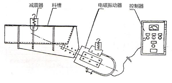 電磁振動給料機的激振器電磁線圈的電流是經過單相半波整流的,當線圈接通后在正半周內有電流通過,銜鐵和鐵芯之間便產生了脈沖電磁力互相吸引,這時槽體向后運動,激振器的主彈簧發(fā)生變形儲存了一定的勢能,在負半周線圈中無電流通過,電磁力消失,主彈簧釋放能量,使銜鐵和鐵芯朝反方向離槽體向前運動。于是電磁振動給料機以交流電源的頻率往復振動,由于槽體的底平面與激振力作用線有一定的夾角,因此槽體的物料沿拋物線的軌跡連續(xù)不斷地向前運動。調整整流電壓的高低,即可控制設備的送料量。